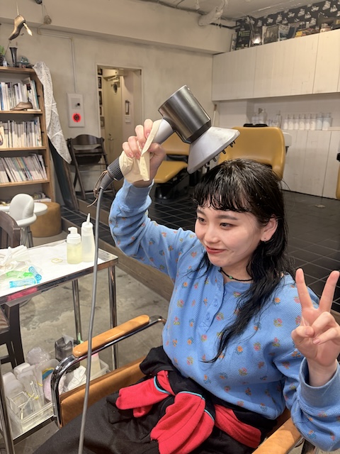先日、レッスンを終えて今日もいいスタイルが切れたね〜と。一息ついた後。
