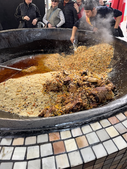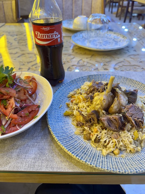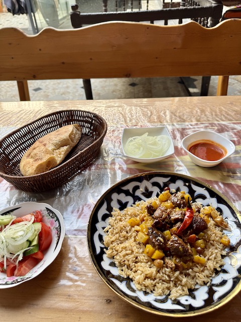 ホテルに荷物を置いて、お昼ご飯はウズベキスタンの国民食プロフ。
