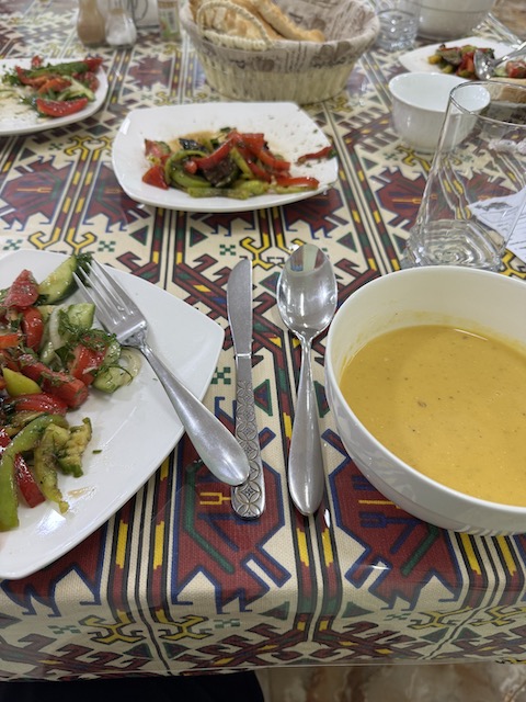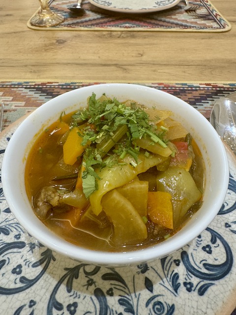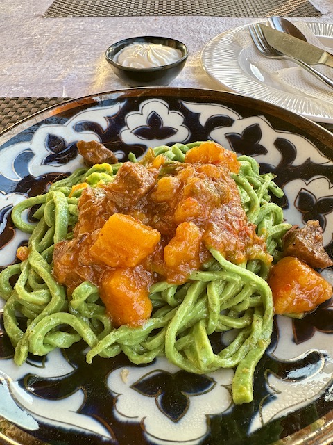 夜ご飯はヒヴァ名物のシヴィットオシュ。
