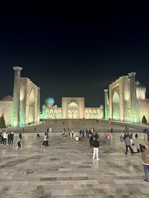 有名なレギスタン広場、青の都と呼ばれるサマルカンドの象徴です。