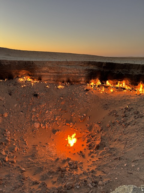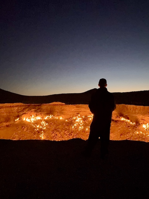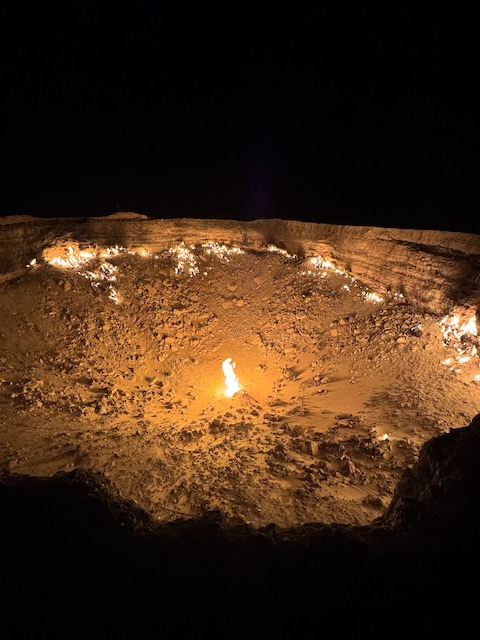 ボコボコの道を蛇行運転しながら18:00くらいにやっと到着、ここが地獄の門と呼ばれるガスクレーター。